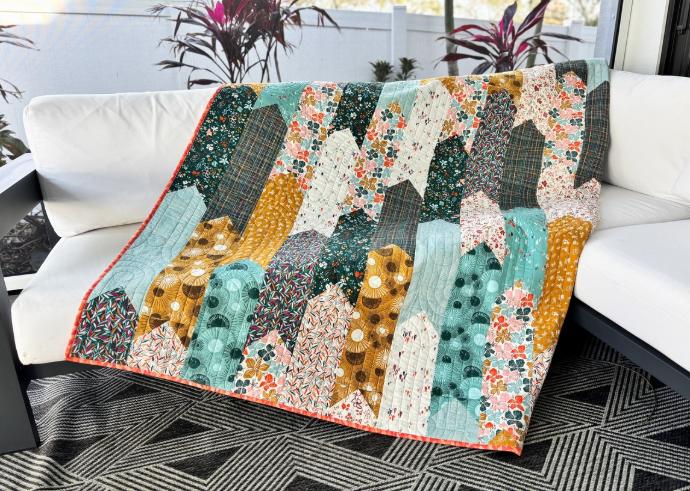 The pattern is from the book, Stripology Quickies. Instructions are included for crib, lap, twin, full, queen, and king size. Pick whichever size you'd like to work on in class.