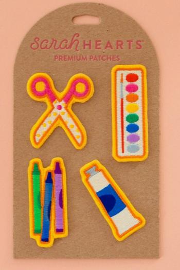 Easily add color and personality to your look with these four colorful, vibrant art supply embroidered patches. Stick them onto any jacket, pouch, or case to add a unique, creative touch. Patches feature a watercolor set, paint tube, scissors, and crayons. Peel and stick to customize your look! Sewing recommended for longer use.